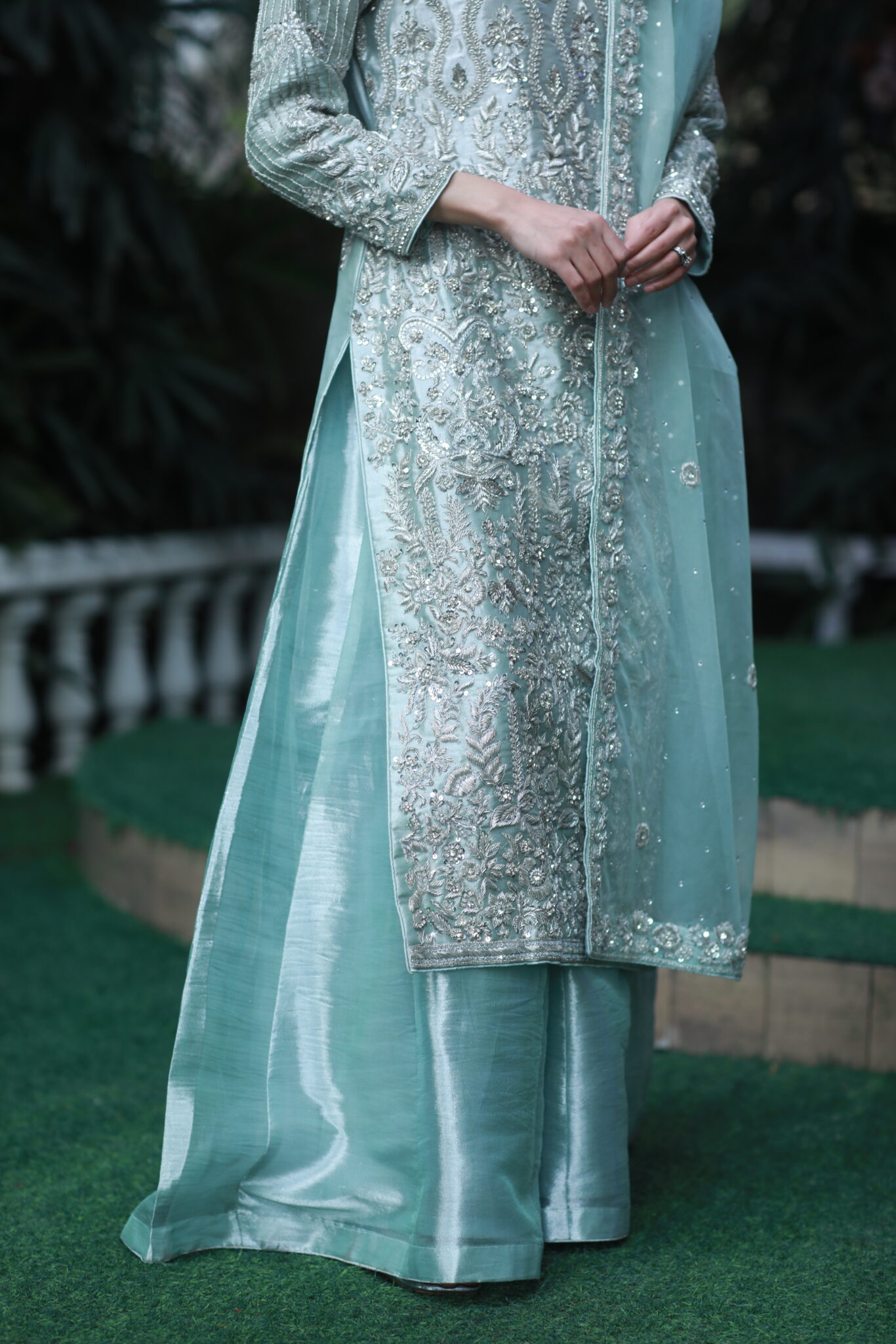 • Work: Silver zari embroidery with delicate hand embellishments